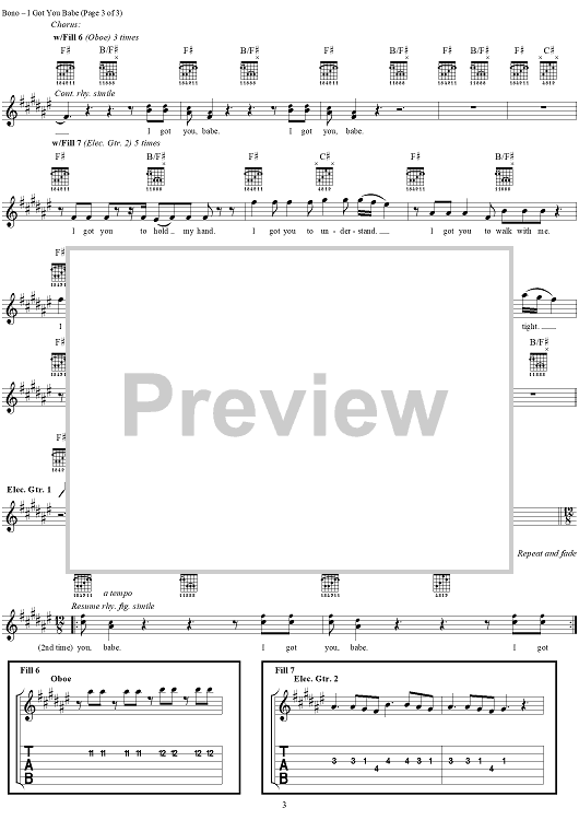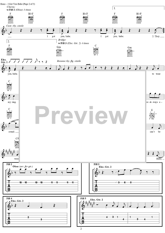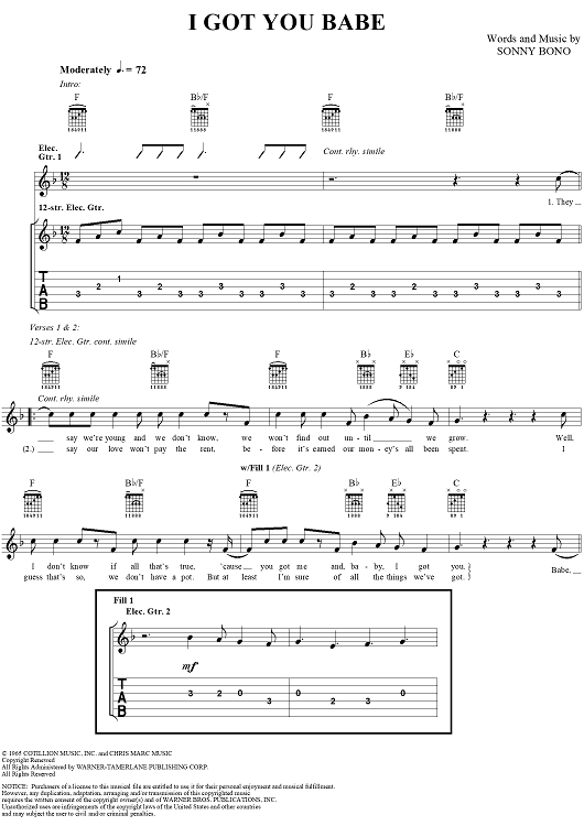 Digital Sheet Music for I Got You Babe by Sonny Bono, Sonny & Cher scored for Guitar Tab/Vocal; id:285017