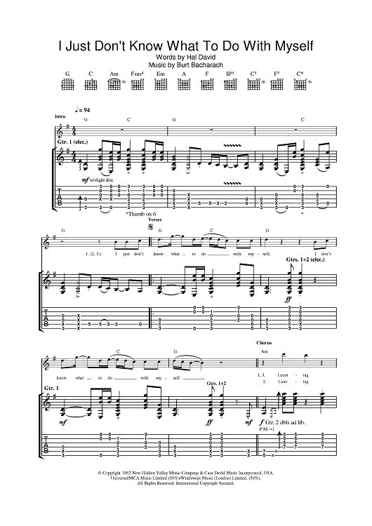 Digital Sheet Music for I Just Don't Know What To Do With Myself by The White Stripes scored for Guitar Tab; id:375575