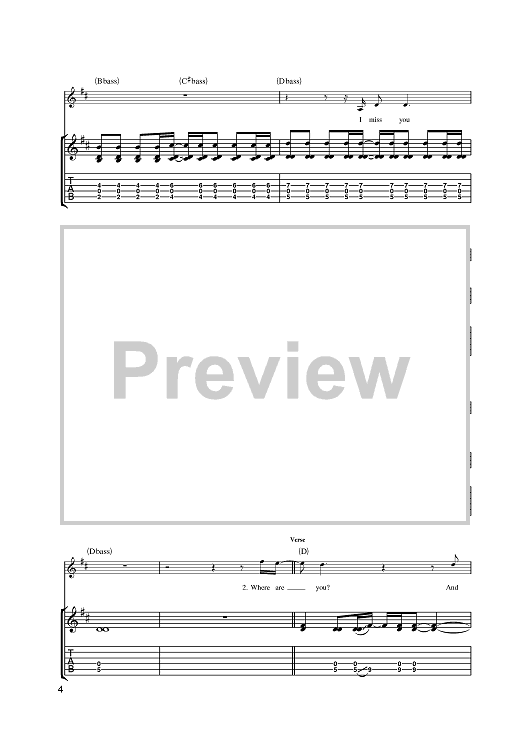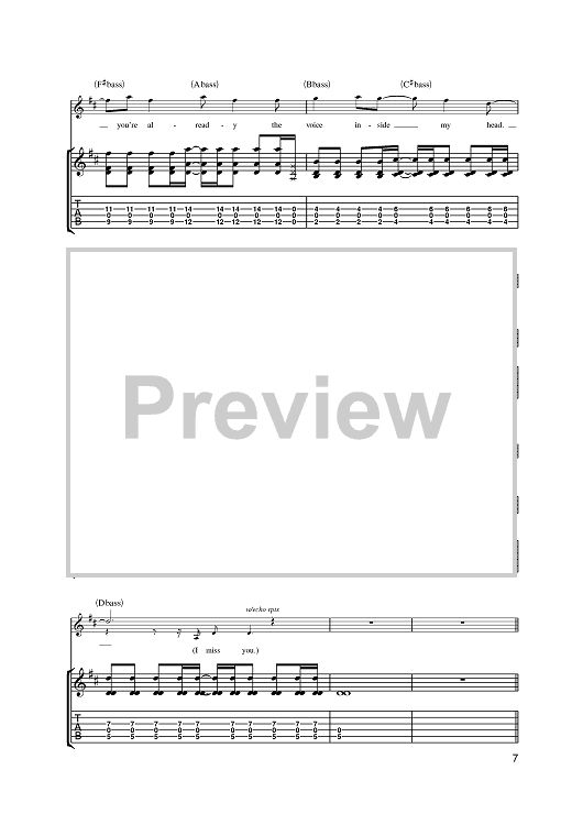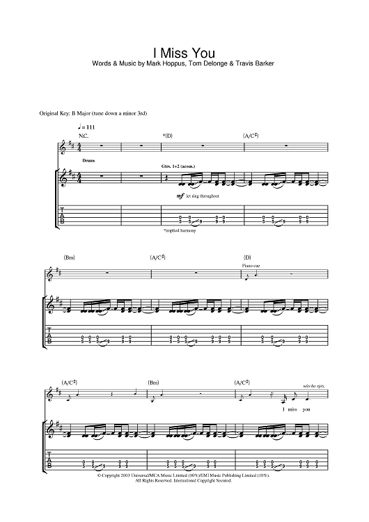 Digital Sheet Music for I Miss You by Travis Barker, Mark Hoppus, blink-182, Tom DeLonge scored for Guitar Tab; id:386589