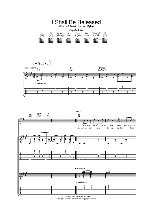 "I Shall Be Released" Sheet Music by Bob Dylan