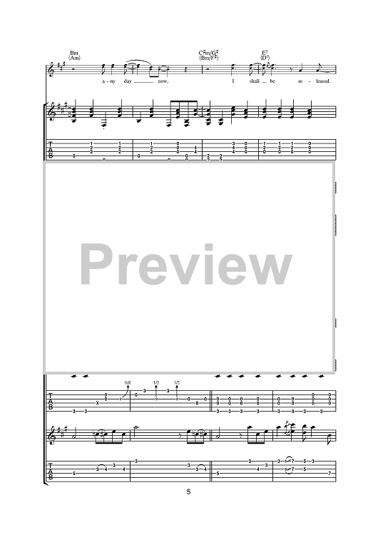 Digital Sheet Music for I Shall Be Released by Bob Dylan scored for Guitar Tab; id:380719