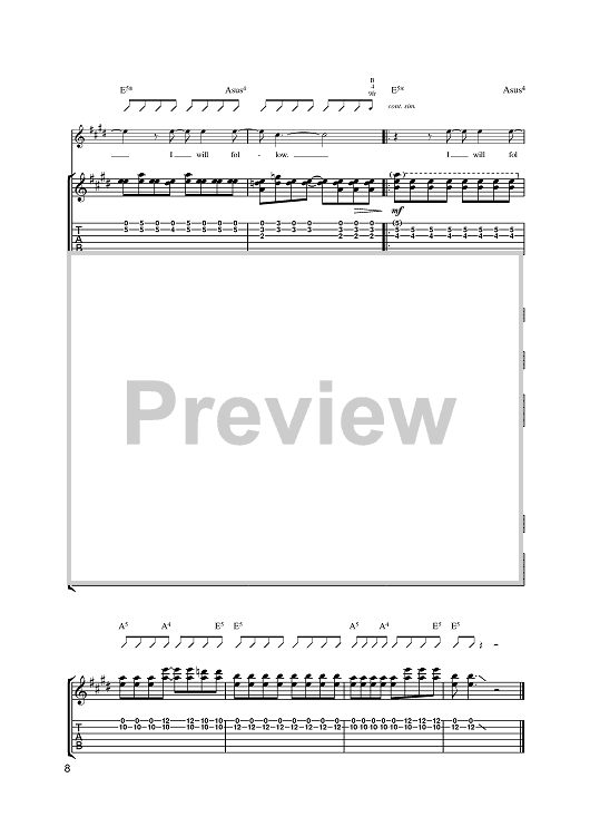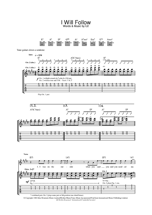 Digital Sheet Music for I Will Follow by U2, Bono, The Edge scored for Guitar Tab; id:383963