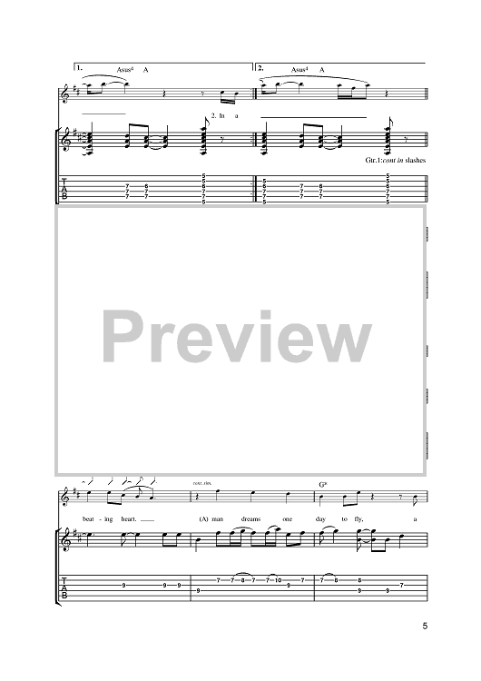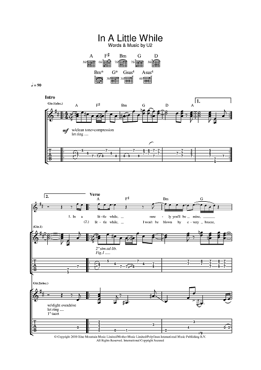 Digital Sheet Music for In A Little While by U2, Bono scored for Guitar Tab; id:384171