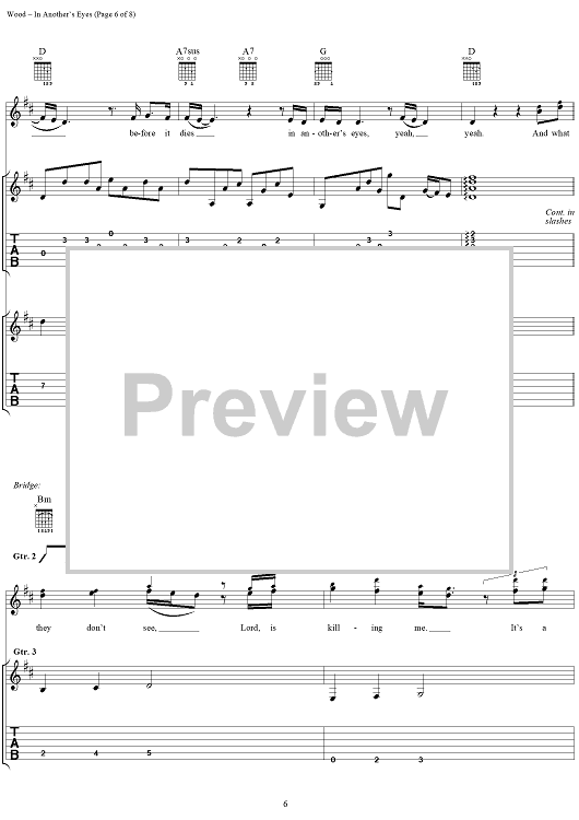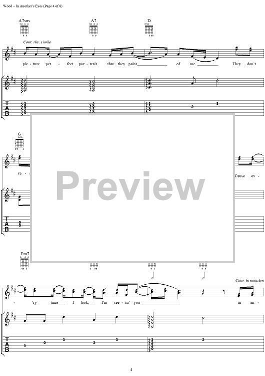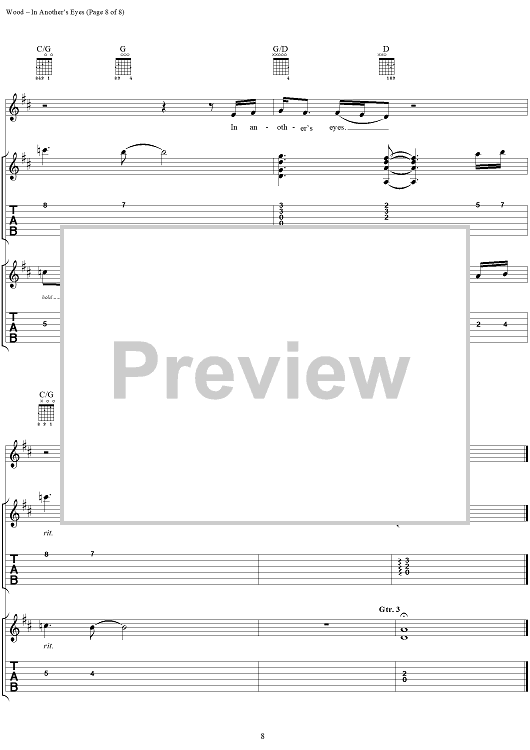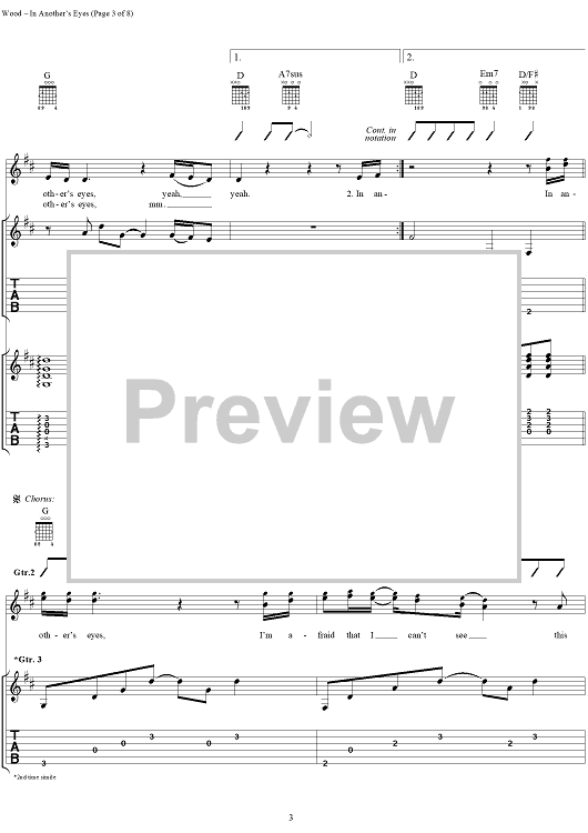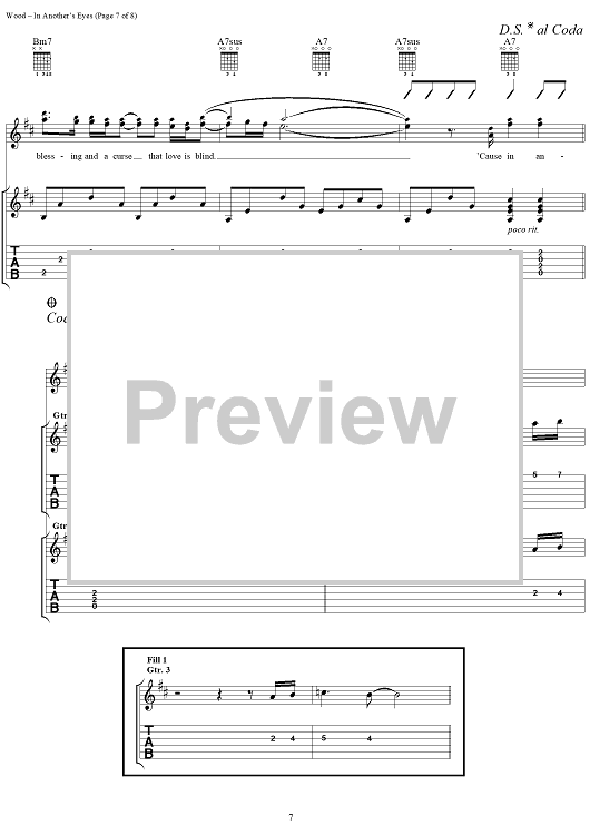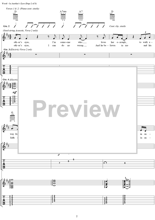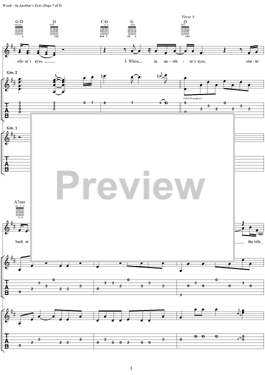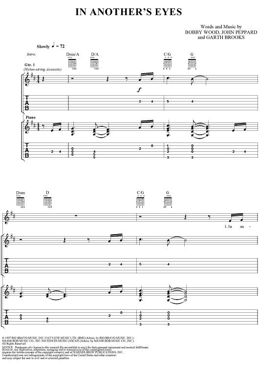 Digital Sheet Music for In Another's Eyes by Trisha Yearwood, Garth Brooks, Bobby Wood, John Peppard scored for Guitar Tab/Vocal; id:112226