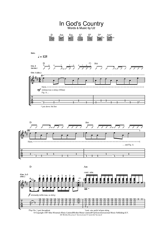 Digital Sheet Music for In God's Country by U2 scored for Guitar Tab; id:386360