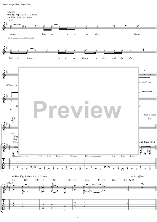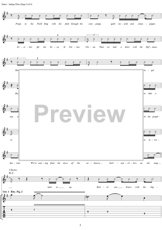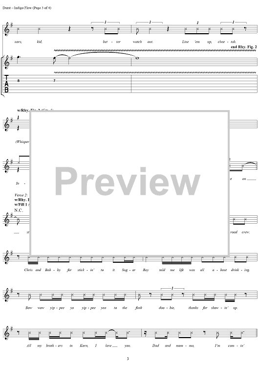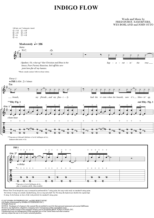 Digital Sheet Music for Indigo Flow by Wes Borland, Sam Rivers, John Otto, Fred Durst, Limp Bizkit scored for Guitar Tab/Vocal; id:193923