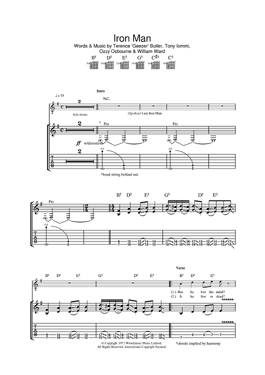 Digital Sheet Music for Iron Man by Bill Ward, Black Sabbath, Geezer Butler, Tony Iommi, Ozzy Osbourne scored for Guitar Tab; id:387833