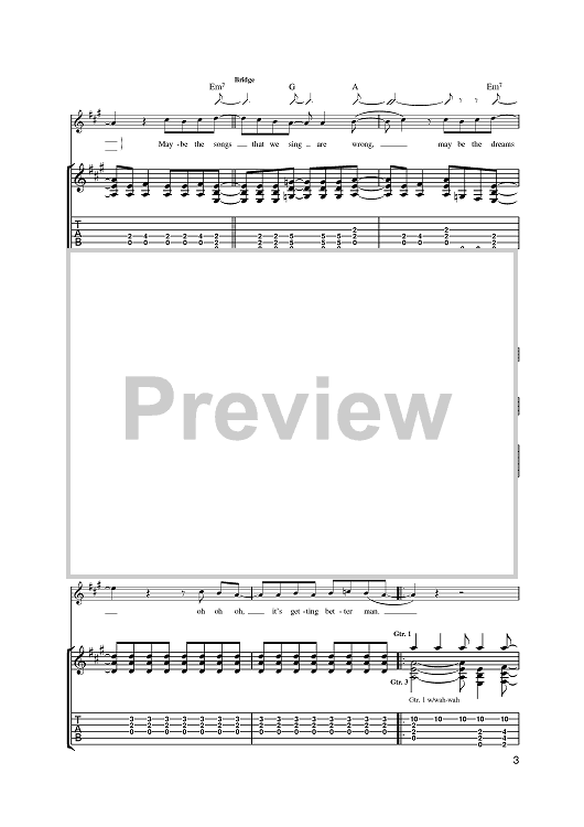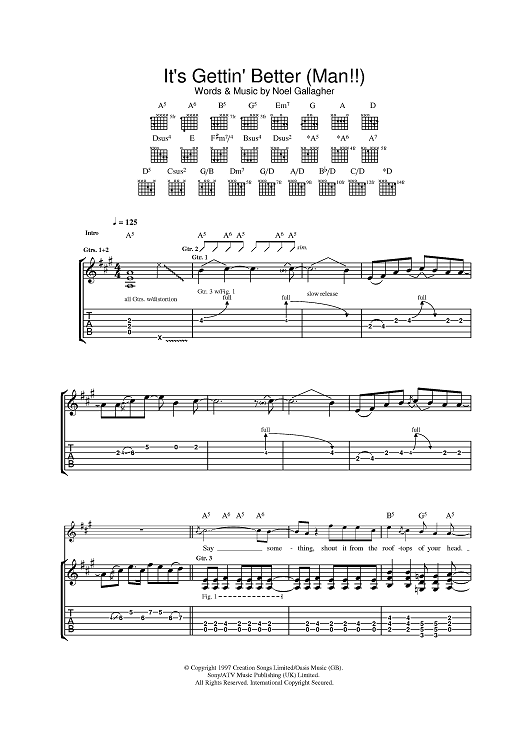Digital Sheet Music for It's Gettin' Better (Man!!) by Noel Gallagher, Oasis scored for Guitar Tab; id:385699