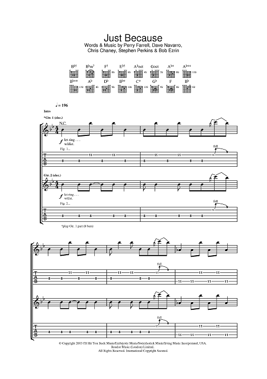 Digital Sheet Music for Just Because by Bob Ezrin, Chris Chaney, Perry Farrell, Jane's Addiction, Dave Navarro, Stephen Perkins scored for Guitar Tab; id:385407