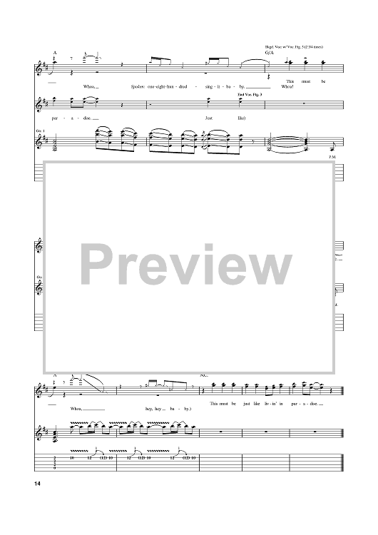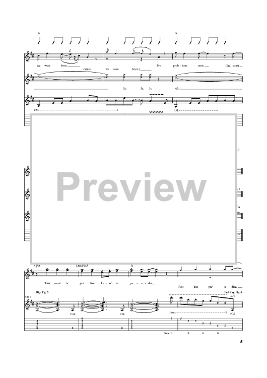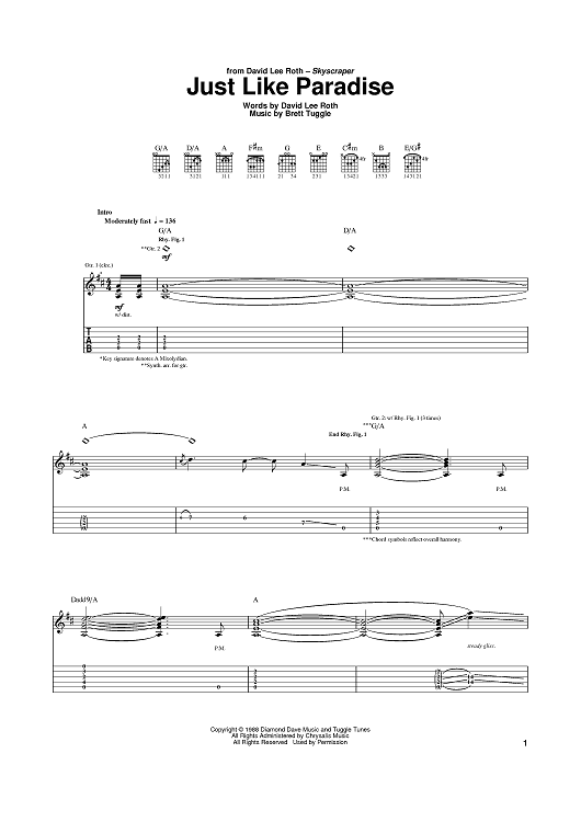 Digital Sheet Music for Just Like Paradise by David Lee Roth, Brett Tuggle scored for Guitar Tab; id:385937