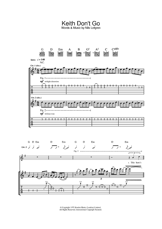 "Keith Don't Go" Sheet Music by Nils Lofgren