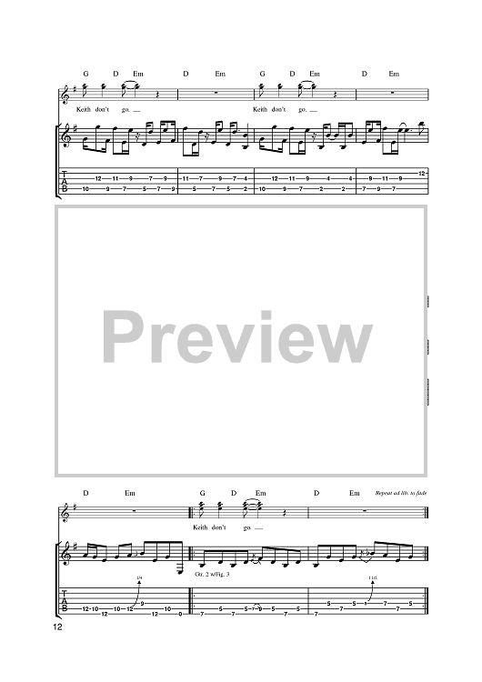 Digital Sheet Music for Keith Don't Go by Nils Lofgren scored for Guitar Tab; id:387195