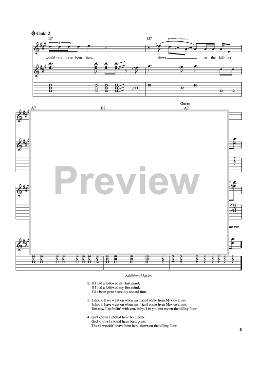 Digital Sheet Music for Killing Floor by Albert King, Jimi Hendrix, Michael Bloomfield, Howlin' Wolf scored for Guitar Tab; id:389138