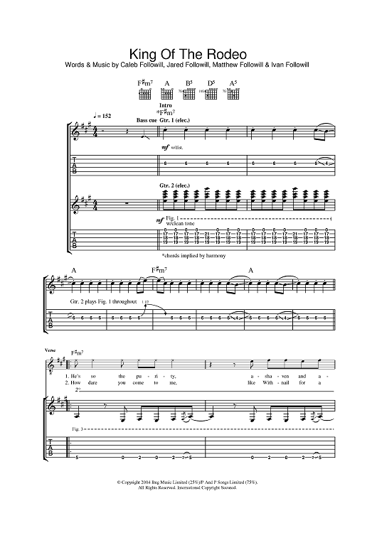 Digital Sheet Music for King Of The Rodeo by Caleb Followill, Ivan Followill, Jared Followill, Matthew Followill, Kings of Leon scored for Guitar Tab; id:387337