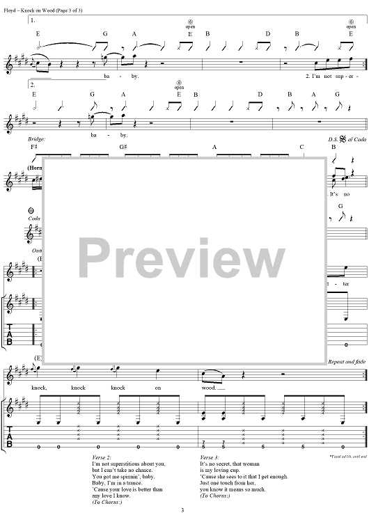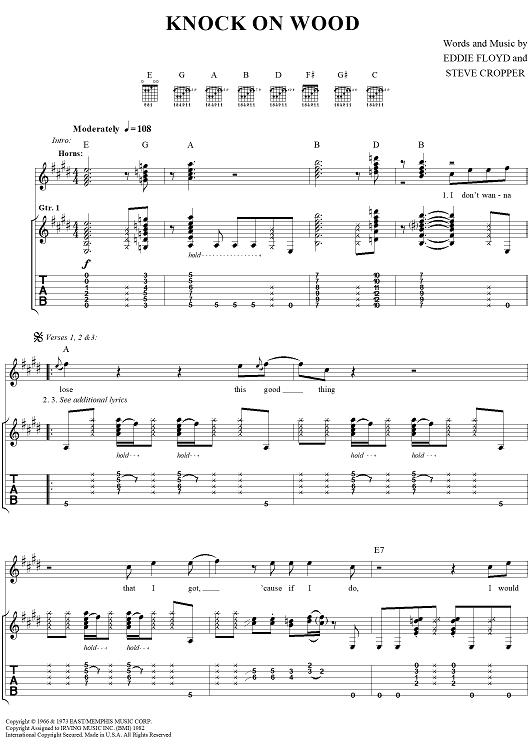 Digital Sheet Music for Knock on Wood by Kenn Chipkin, Steve Cropper, Eddie Floyd scored for Guitar Tab/Vocal/Chords; id:269808