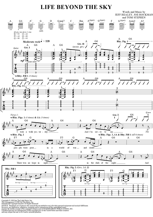 Digital Sheet Music for Life Beyond the Sky by Tom Stephen, The Jeff Healey Band, Jeff Healey, Joe Rockman scored for Guitar Tab/Vocal; id:267235