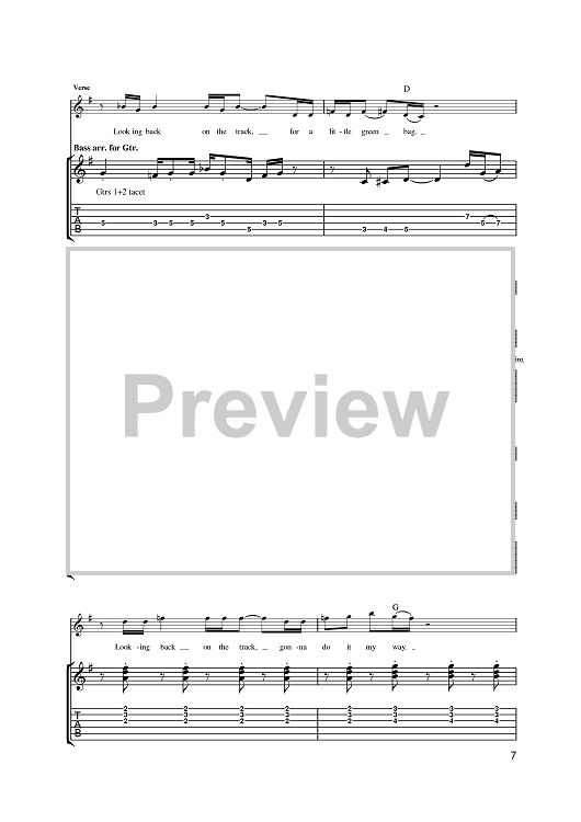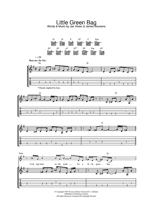 Digital Sheet Music for Little Green Bag by George Baker, James Bouwens, Jan Visser scored for Guitar Tab; id:383241