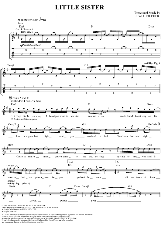 Digital Sheet Music for Little Sister by Jewel, Jewel Kilcher scored for Guitar Tab/Vocal; id:311740