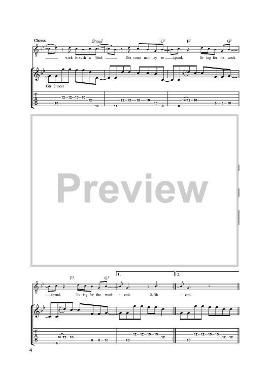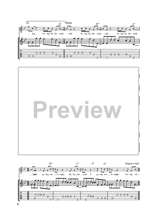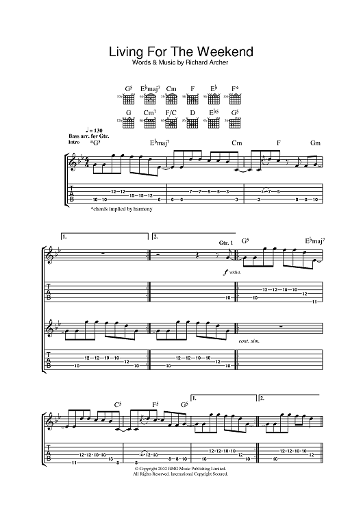 Digital Sheet Music for Living For The Weekend by Richard Archer, Hard-Fi scored for Guitar Tab; id:386997