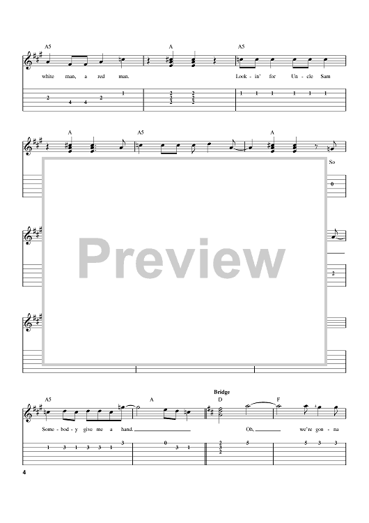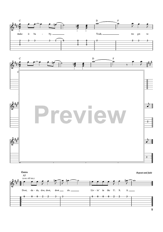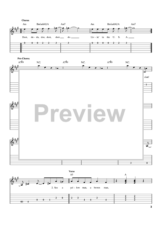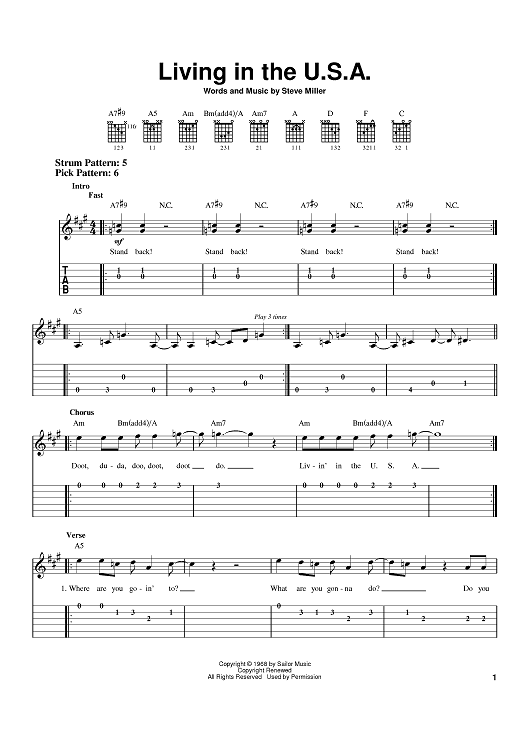 Digital Sheet Music for Living In The U.S.A. by Steve Miller, Steve Miller Band scored for Easy Guitar Tab; id:386199