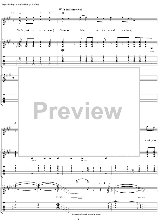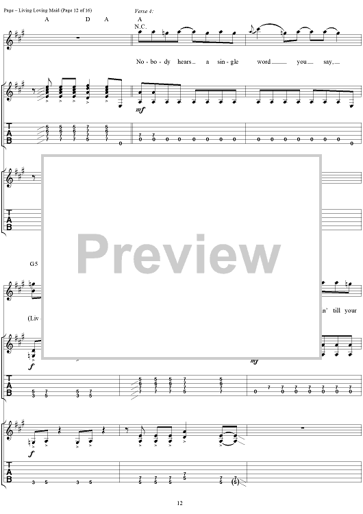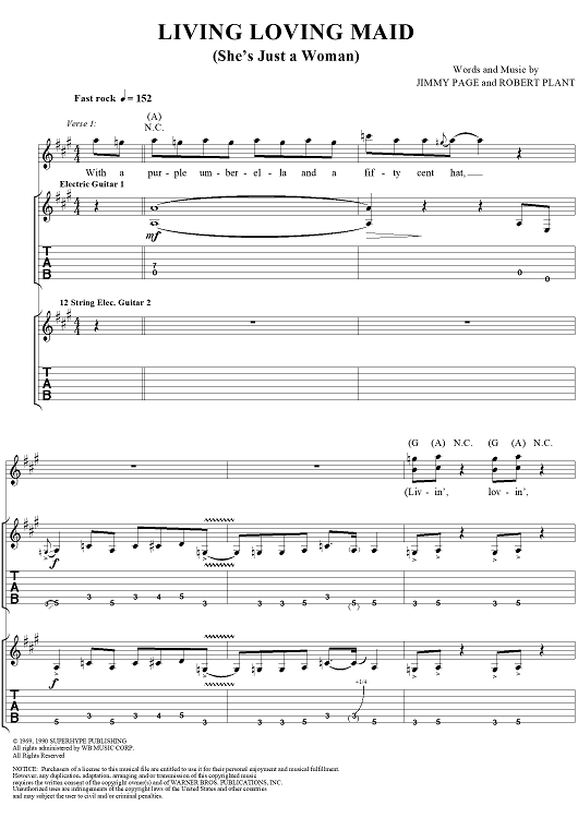 "Living Loving Maid (She's Just a Woman)" Sheet Music by Led Zeppelin