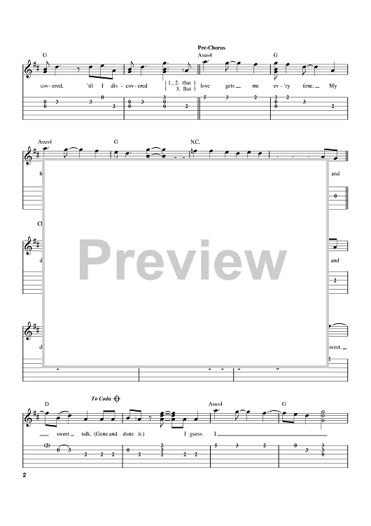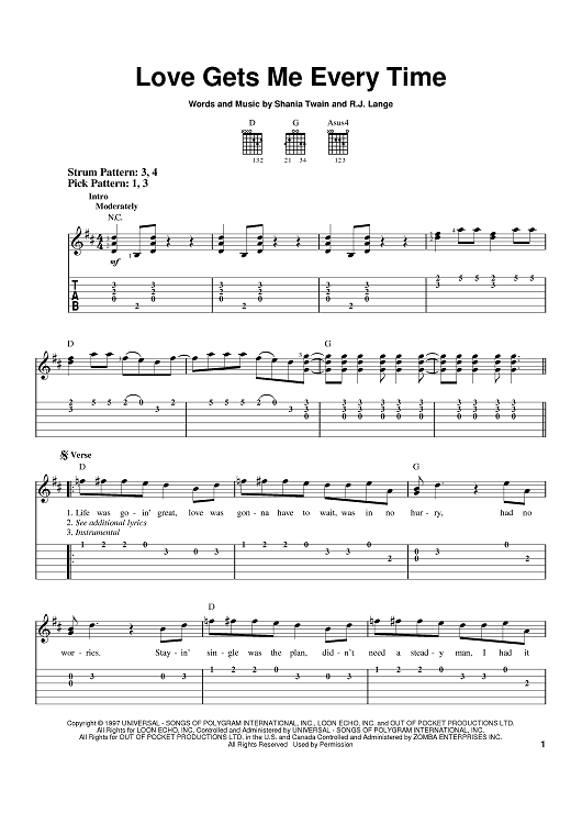 Digital Sheet Music for Love Gets Me Every Time by Shania Twain, Robert Lange scored for Easy Guitar Tab; id:383582