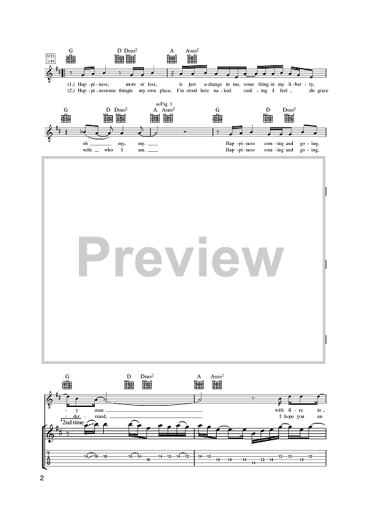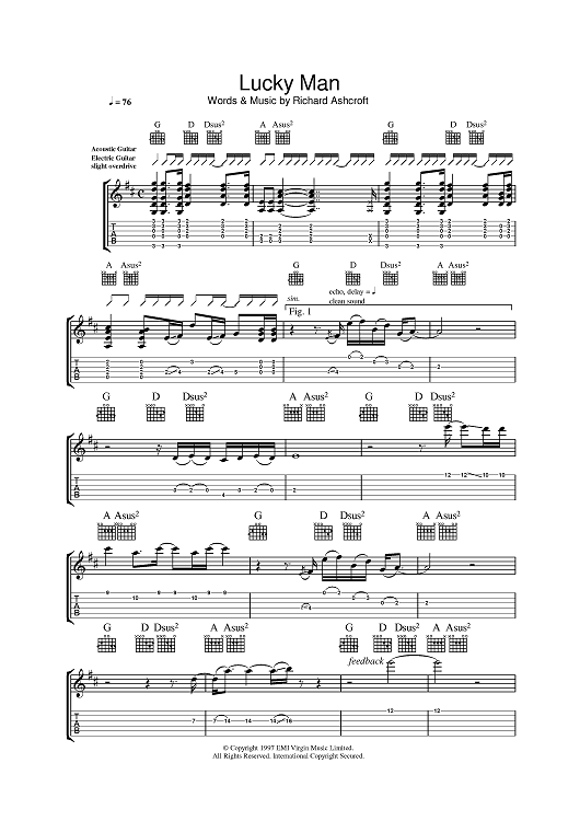 Digital Sheet Music for Lucky Man by Richard Ashcroft, The Verve scored for Guitar Tab; id:387845