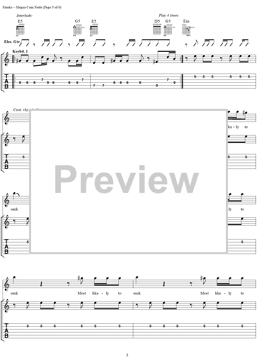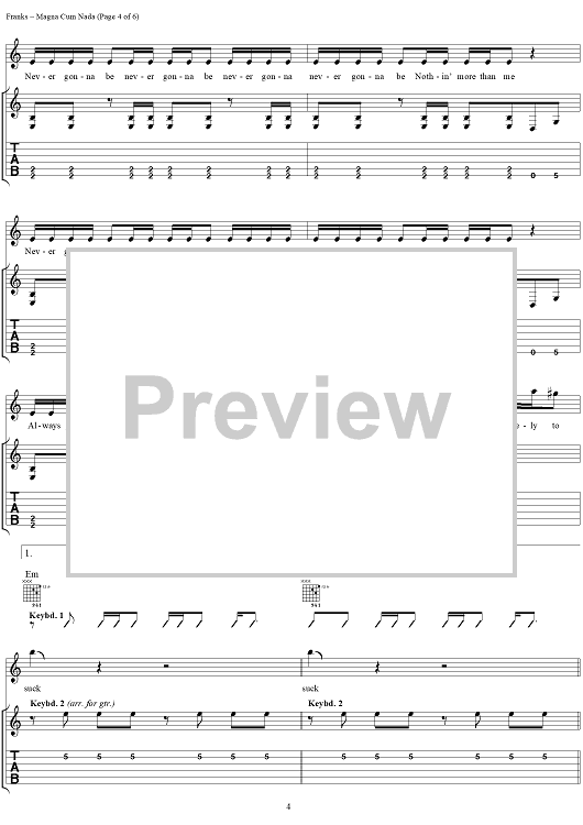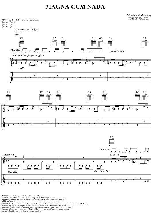 "Magna Cum Nada" Sheet Music by Bloodhound Gang