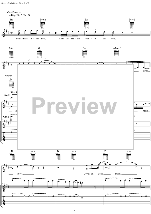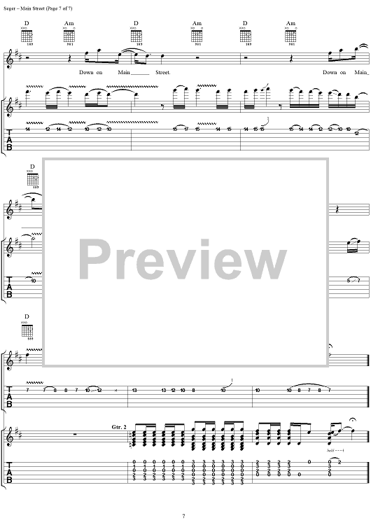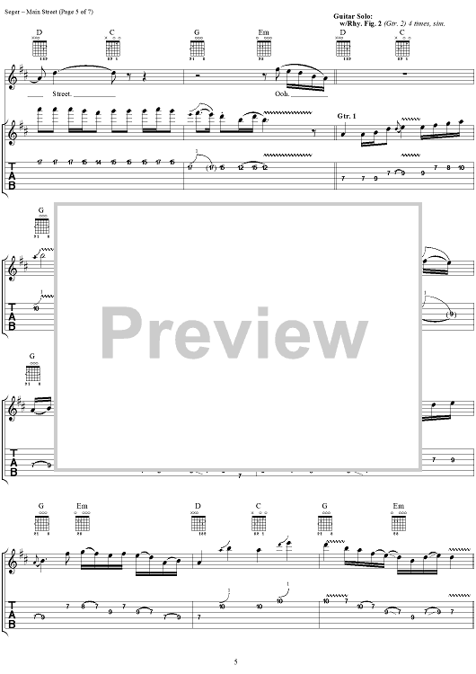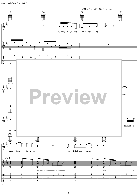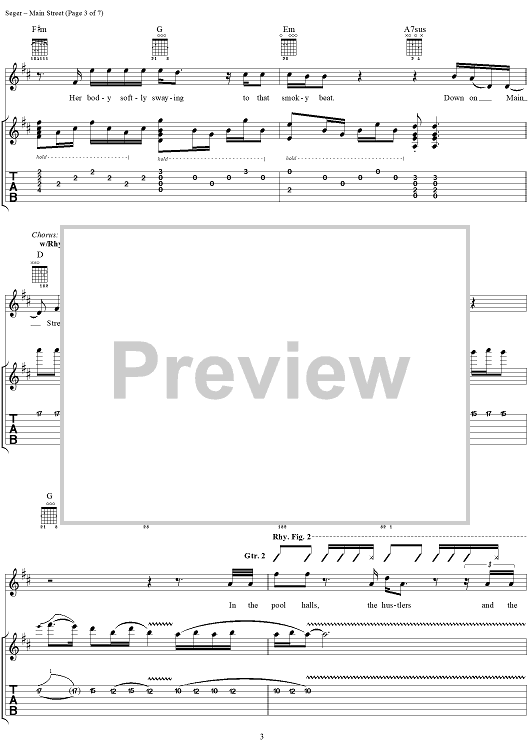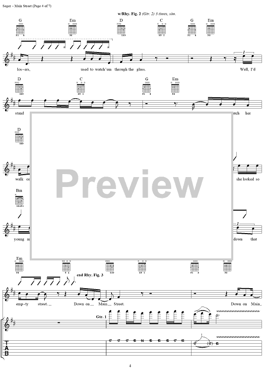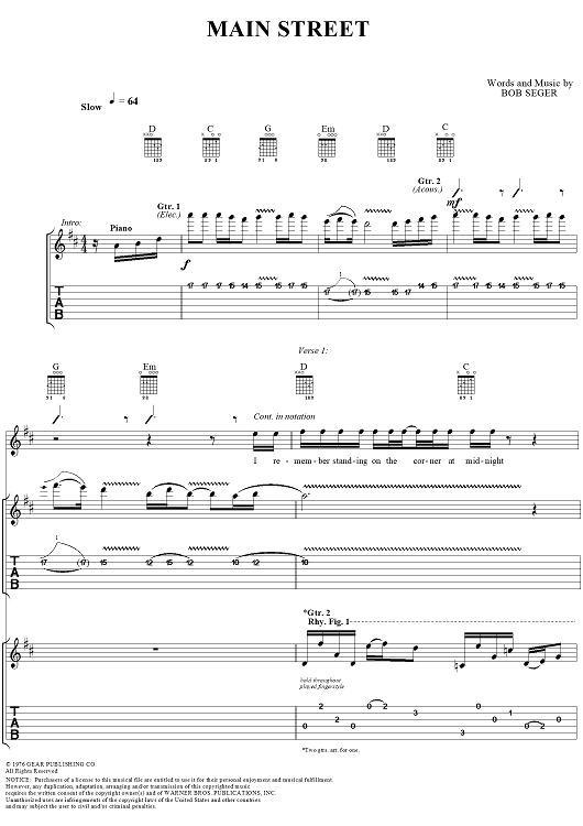 Digital Sheet Music for Mainstreet by Bob Seger scored for Guitar Tab/Vocal; id:113910
