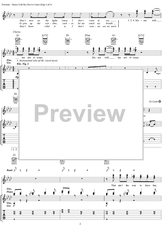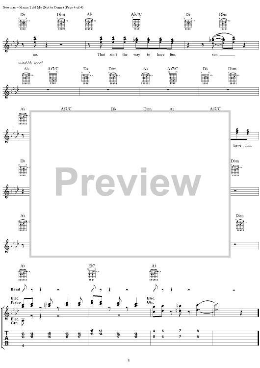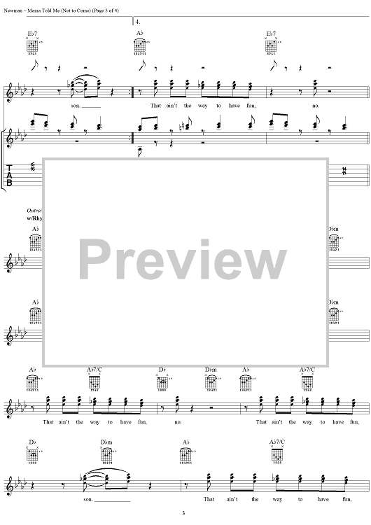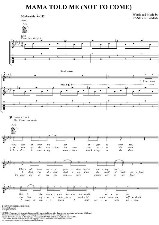 Digital Sheet Music for Mama Told Me (Not to Come) by Randy Newman, Three Dog Night scored for Guitar Tab/Vocal; id:303170