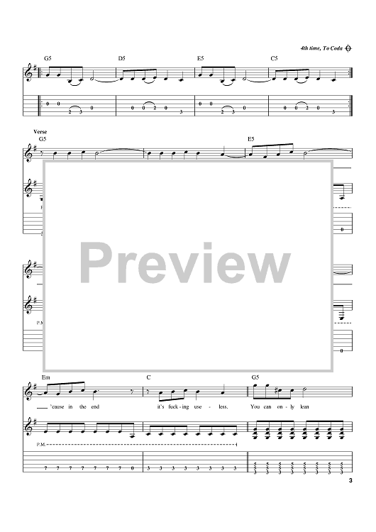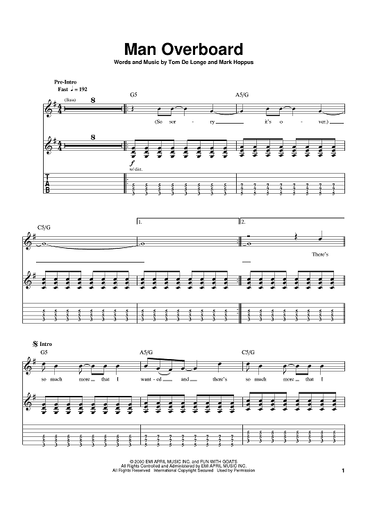Digital Sheet Music for Man Overboard by Mark Hoppus, blink-182, Tom DeLonge scored for Guitar Tab; id:389117