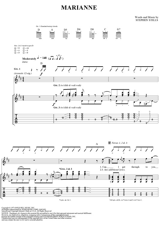 "Marianne" Sheet Music by Stephen Stills