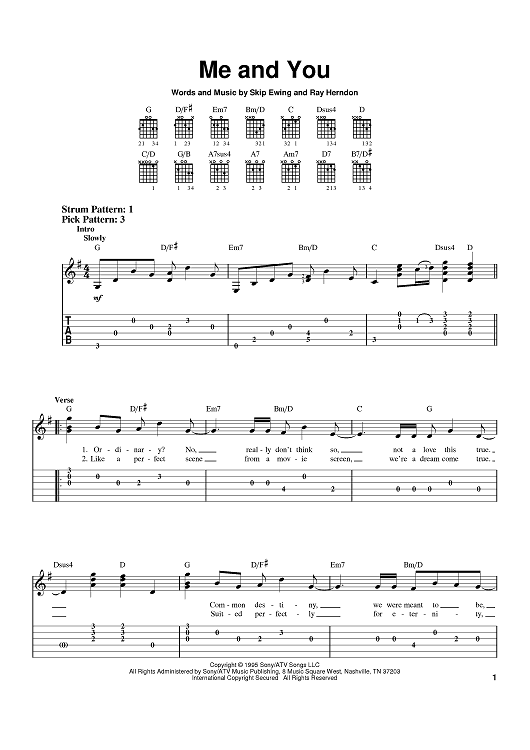 Digital Sheet Music for Me And You by Kenny Chesney, Skip Ewing, Ray Herndon scored for Easy Guitar Tab; id:383517