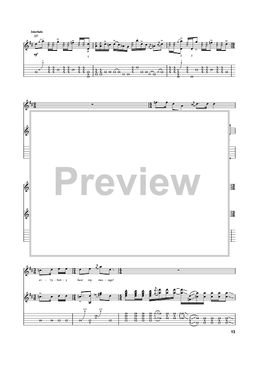 Digital Sheet Music for Message To Love (Message Of Love) by Jimi Hendrix scored for Guitar Tab; id:385260