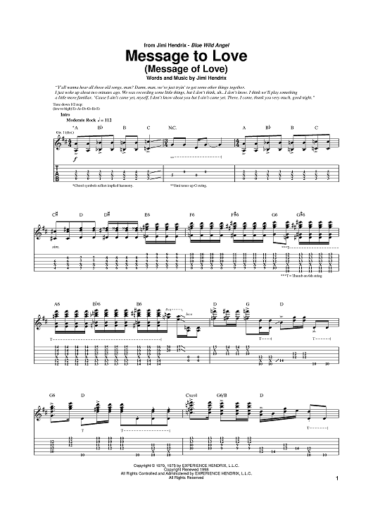 "Message To Love (Message Of Love)" Sheet Music by Jimi Hendrix