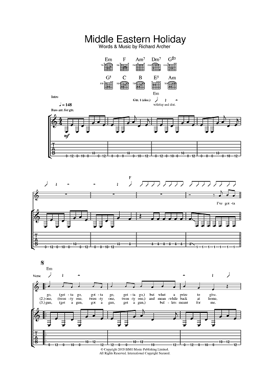 Digital Sheet Music for Middle Eastern Holiday by Richard Archer, Hard-Fi scored for Guitar Tab; id:387013