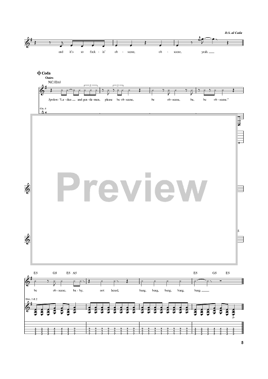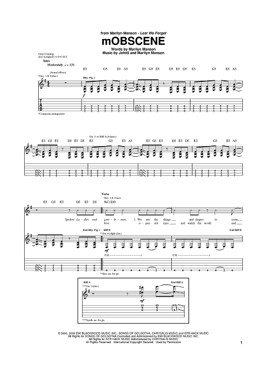 Digital Sheet Music for mOBSCENE by John 5, Marilyn Manson scored for Guitar Tab; id:384636