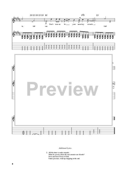 "Monkey Wrench" Sheet Music by Foo Fighters