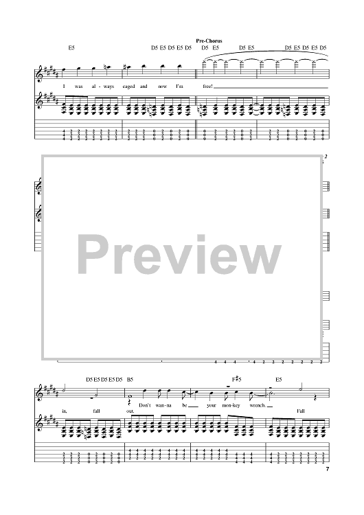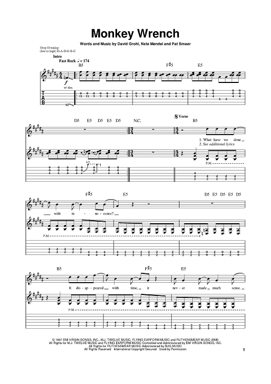 Digital Sheet Music for Monkey Wrench by Foo Fighters, Dave Grohl, Nate Mendel, Pat Smear scored for Guitar Tab; id:389868
