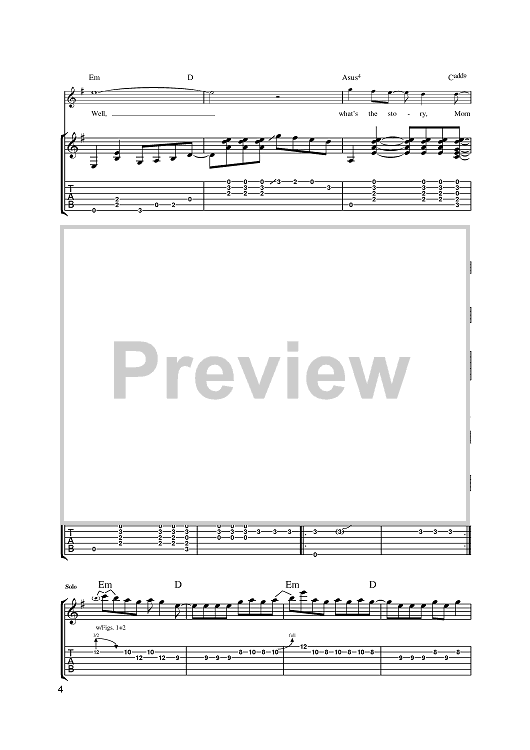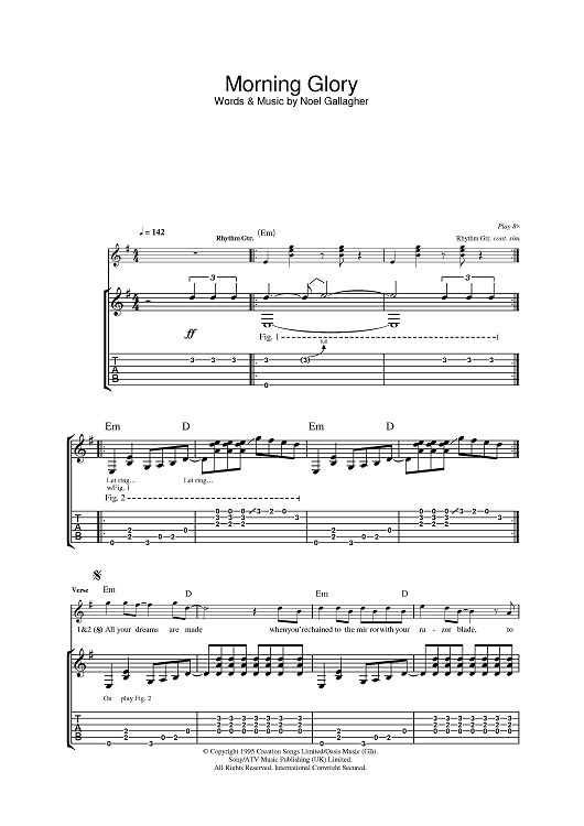 Digital Sheet Music for Morning Glory by Noel Gallagher, Oasis scored for Guitar Tab; id:390724
