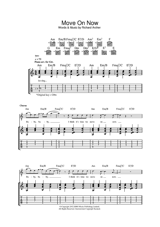 Digital Sheet Music for Move On Now by Richard Archer, Hard-Fi scored for Guitar Tab; id:387012