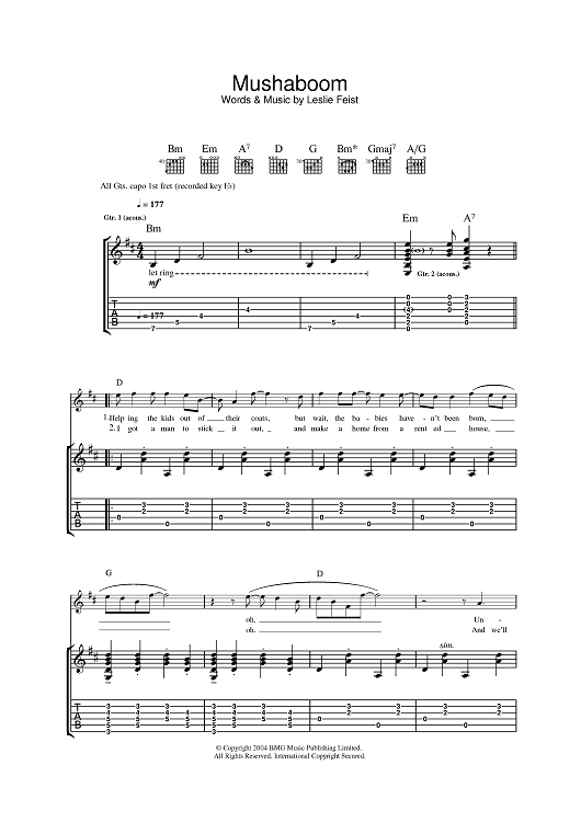 Digital Sheet Music for Mushaboom by Feist scored for Guitar Tab; id:385622