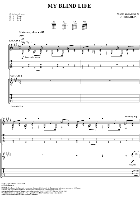Digital Sheet Music for My Blind Life by Yardbirds, Chris Dreja scored for Guitar Tab/Vocal; id:304230