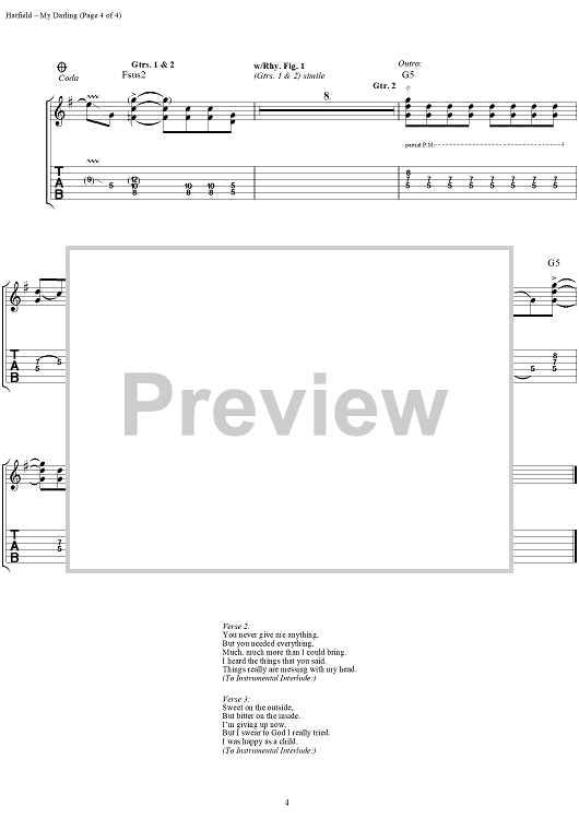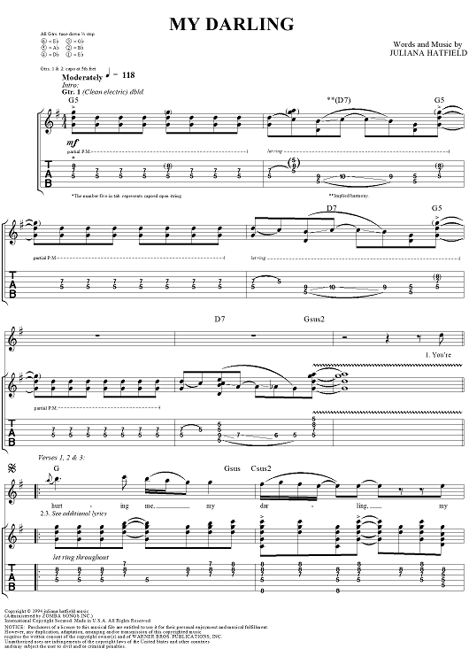Digital Sheet Music for My Darling by Juliana Hatfield scored for Guitar Tab/Vocal; id:154799