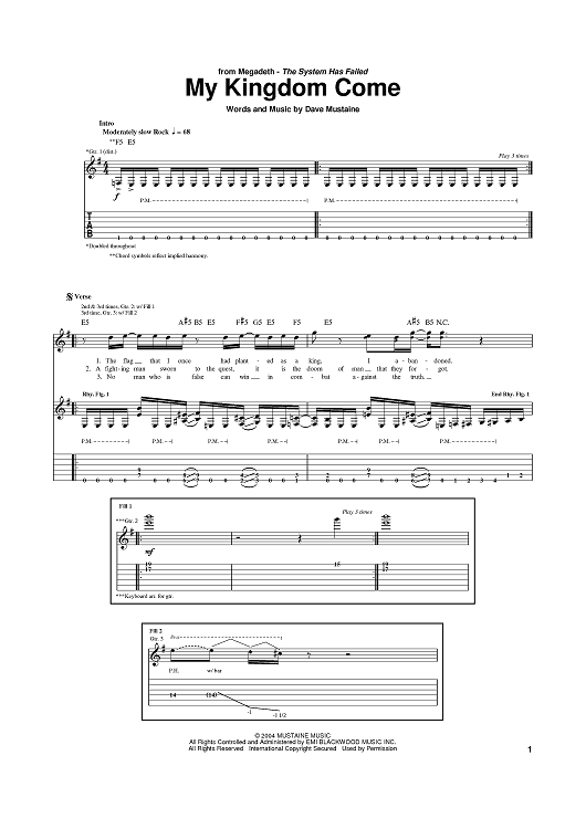 Digital Sheet Music for My Kingdom Come by Megadeth, Dave Mustaine scored for Guitar Tab; id:384919