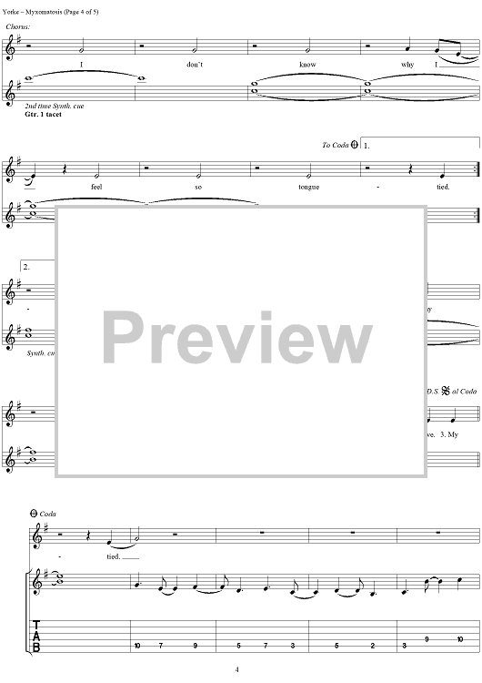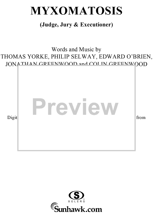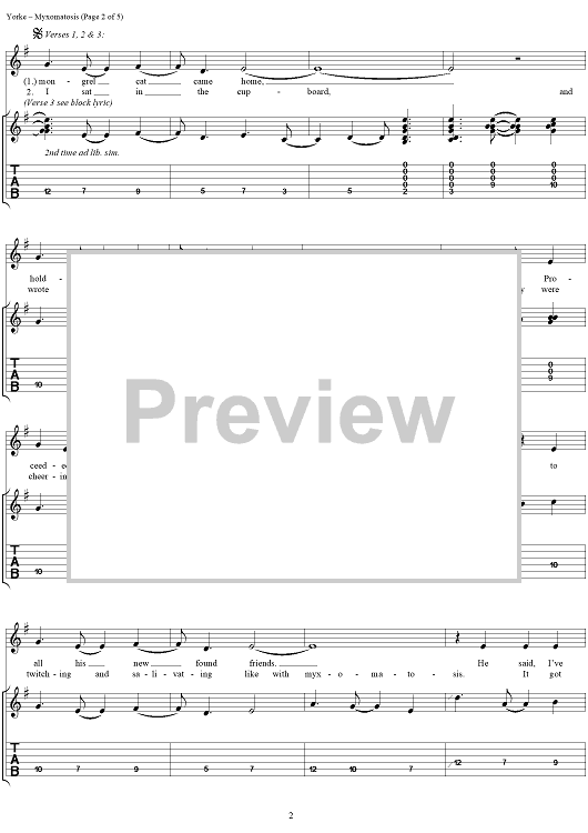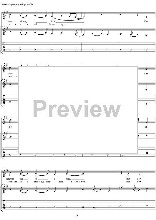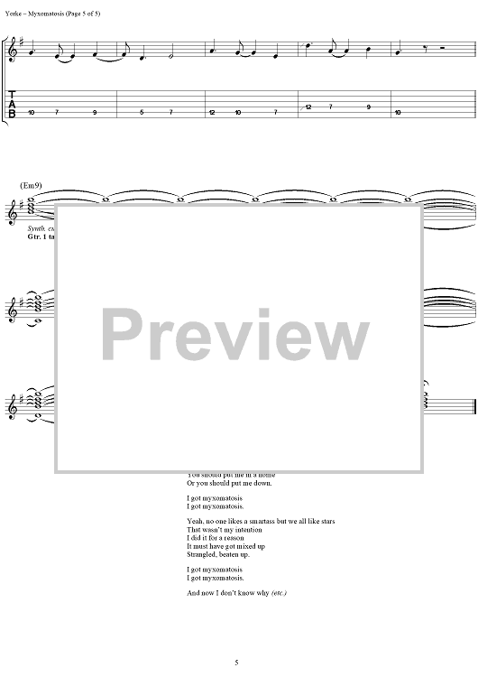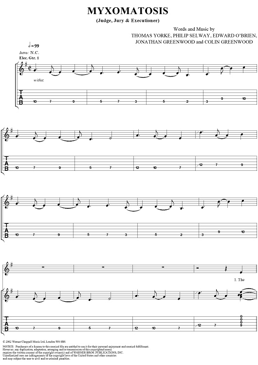 Digital Sheet Music for Myxomatosis by Thomas Yorke, Jonathan Greenwood, Philip Selway, Coz, Edward O'Brien, Radiohead scored for Guitar Tab/Vocal; id:297010