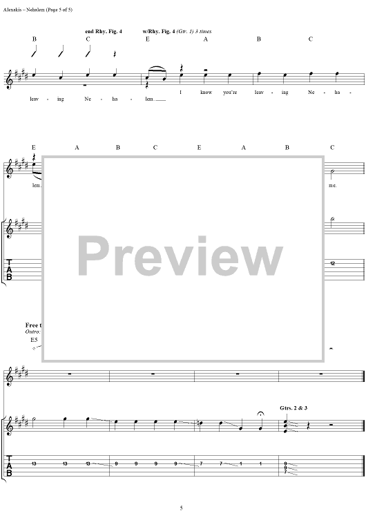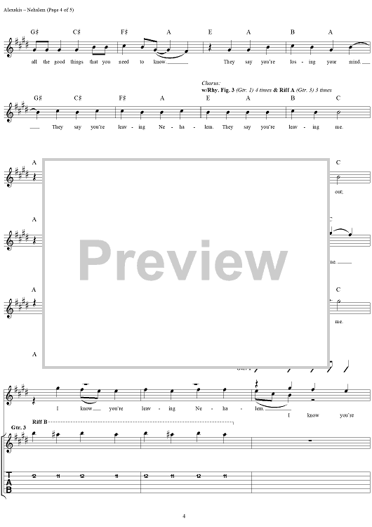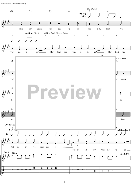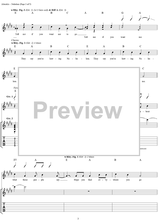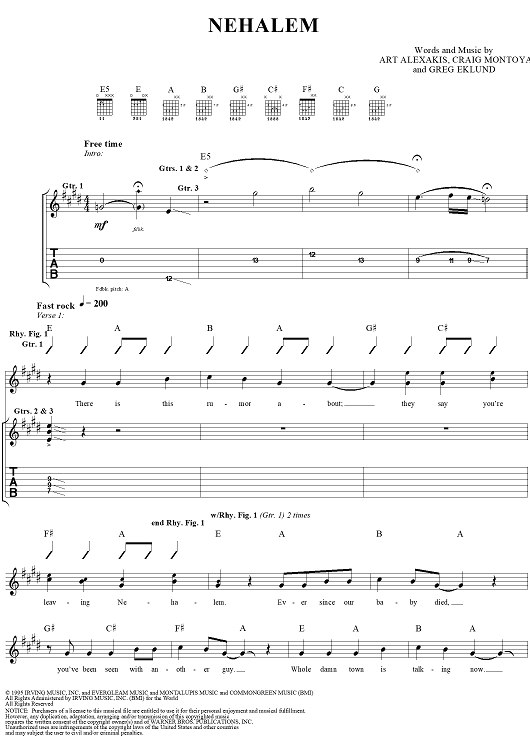 Digital Sheet Music for Nehalem by Everclear, Art Alexakis, Craig Montoya, Greg Eklund scored for Guitar Tab/Vocal; id:277866