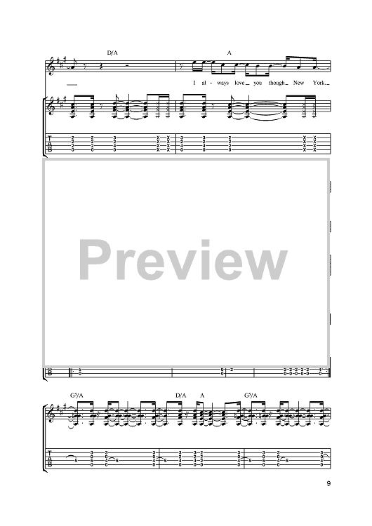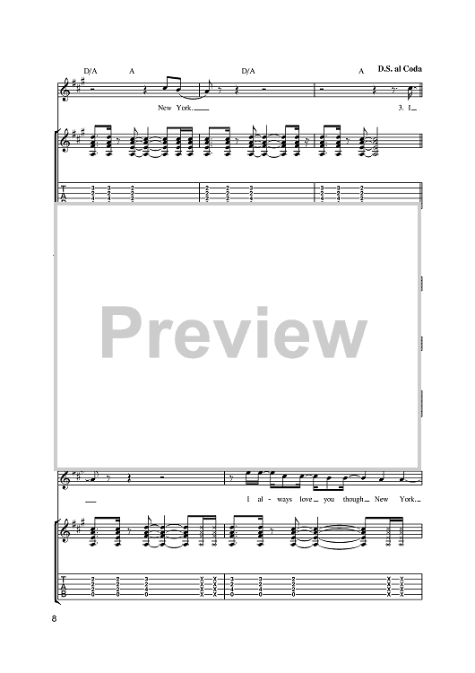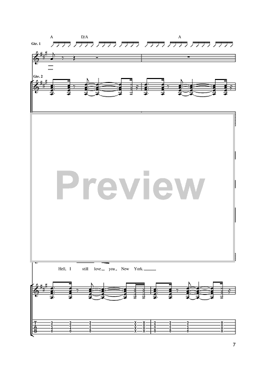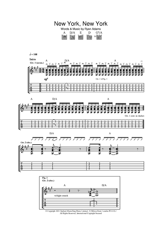 Digital Sheet Music for New York, New York by Ryan Adams scored for Guitar Tab; id:384194