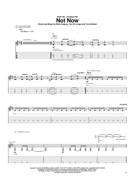 Digital Sheet Music for Not Now by Travis Barker, Mark Hoppus, blink-182, Tom DeLonge scored for Guitar Tab; id:389899