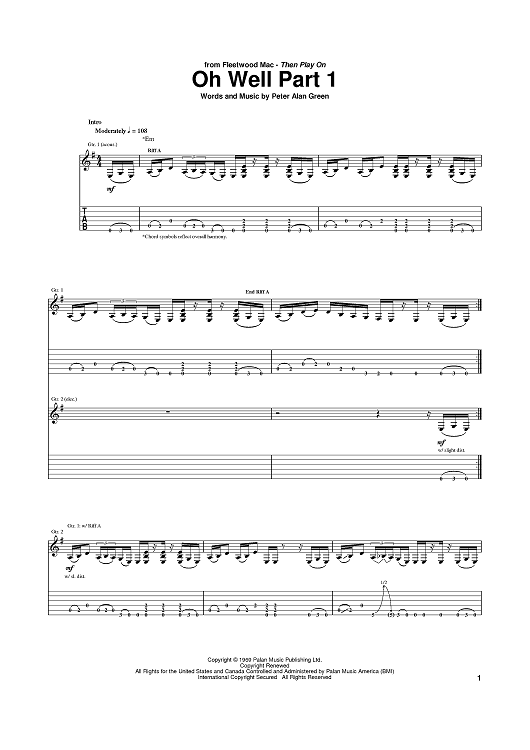 Digital Sheet Music for Oh Well Part 1 by Peter Green, Fleetwood Mac scored for Guitar Tab; id:384379